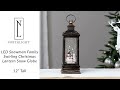 It’s a Christmas lantern – and a snow globe! Our 12.5 inch tall, battery-operated LED lantern radiates classic style, with an antiqued gold-tone frame, traditional vented cap and a ring for hanging. Behind the glass panes, iridescent “snow” dances around the figures of a snowman family dressed in festive hats and scarves near a pair of snowy evergreen trees. An automatic motor periodically blows iridescent glitter into a softly swirling snowfall – no shaking required. This LED Christmas lantern runs on three “AA” batteries and is operated by a convenient on/off switch. Add a soft, warm glow with a touch of sparkle to a mantel, table or buffet with our captivating snow globe lantern.