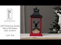 A classic lantern design enhances the simple, country style and bold seasonal colors of this red and black Christmas lantern with candle, featuring a black deer silhouette and “Merry Christmas” message. Our 13.75-inch-tall, battery-operated LED lantern creates the warm ambiance of a real candle without the worry of an open flame, and offers the design flexibility to use it in places that wouldn’t be possible with real candles or electric lanterns. Combine this flameless candle lantern with garland, greens, ornaments and tabletop decorations to introduce warm Christmas charm throughout your home.