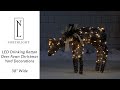 Make this tranquil deer part of your rustic Christmas scene. The 38-inch prelit outdoor deer decoration is crafted from natural rattan over a metal frame. The standing deer figure features an ivory burlap bow, accented with frosted pine cones, artificial pine springs, and white eucalyptus branches. Silver glitter enhances the effect of 100 LED micro fairy lights, making for a striking decoration during the day and through the long winter nights.