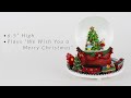 Bring the magic of Christmas to the next level with this festive revolving train musical snow globe. This globe features two children decorating a Christmas tree while a revolving train carrying trees and presents around the base plays the holiday tune "We wish you a merry Christmas." Perfect for display on a tabletop or a great holiday gift to family and friends.