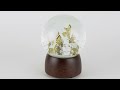 Add a touch of class this Christmas with this stylish village scene musical snow globe. Featuring a natural wooden style base with houses in a snowy forest playing "We Wish You a Merry Christmas and a Happy New Year." Perfect for display on a tabletop or a great holiday gift to family and friends.