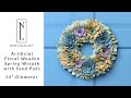 This beautiful artificial Spring wreath is the perfect addition to your home décor! Featuring pastel purple, blue, yellow, and green woodshaving flowers with dried seed pods and green leaves, this wreath is ideal for spring or all year round. It has a flat foam backing for easy placement as a centerpiece or wall décor. Add your own jute rope for a hanging option.