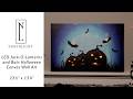 Add a playful fright to your walls with this LED lighted jack-o-lanterns and bats Halloween canvas wall art. Featuring a trio of glowing jack-o-lanterns under a bright blue moonlit sky filled with flying bats, this vibrant scene is enhanced by embedded LED lights for a spooky, illuminated effect. Perfect for indoor Halloween decorating, this battery-operated canvas brings eerie charm to entryways, mantels, or party spaces with a simple switch-on glow.