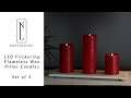 Enjoy the gentle light of candles, flame-free, with this set of three red pillar candles by Northlight. Each candle features a finish of real textured wax with realistic tops that appear slightly melted. The battery-operated 4, 6 and 8-inch flameless candles use long-lasting LED lights for a warm glow that flickers to mimic soft candlelight. These flameless candles are safely combined in floral centerpieces and are safe for use around pets and children.